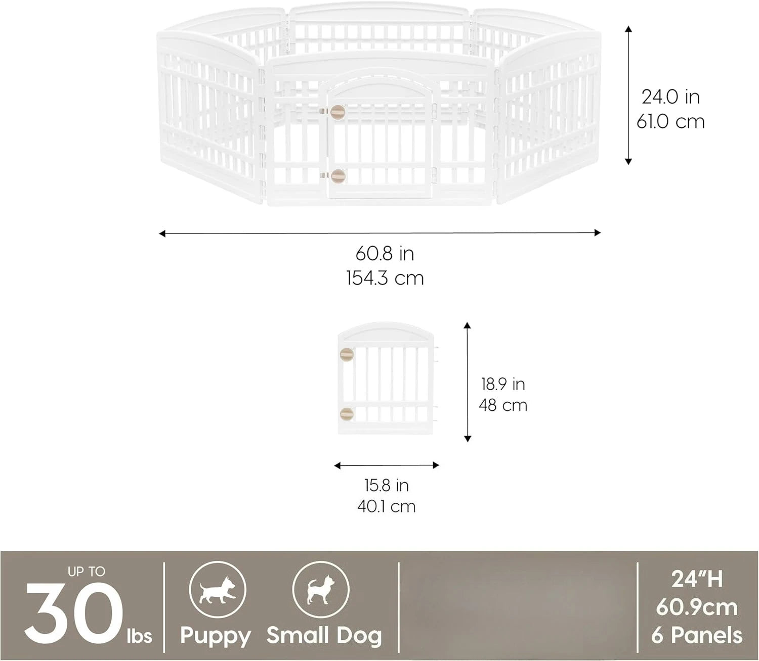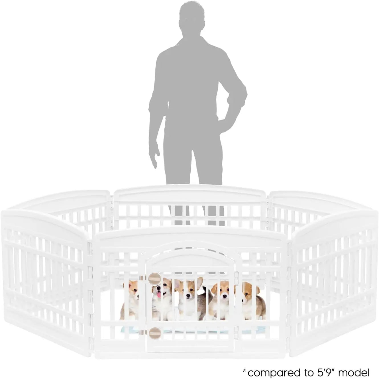 - Ideal for extra-small to medium breeds and puppies, with a 24-inch height and a 61" x 61" footprint to give your dog room to move while staying safely contained.