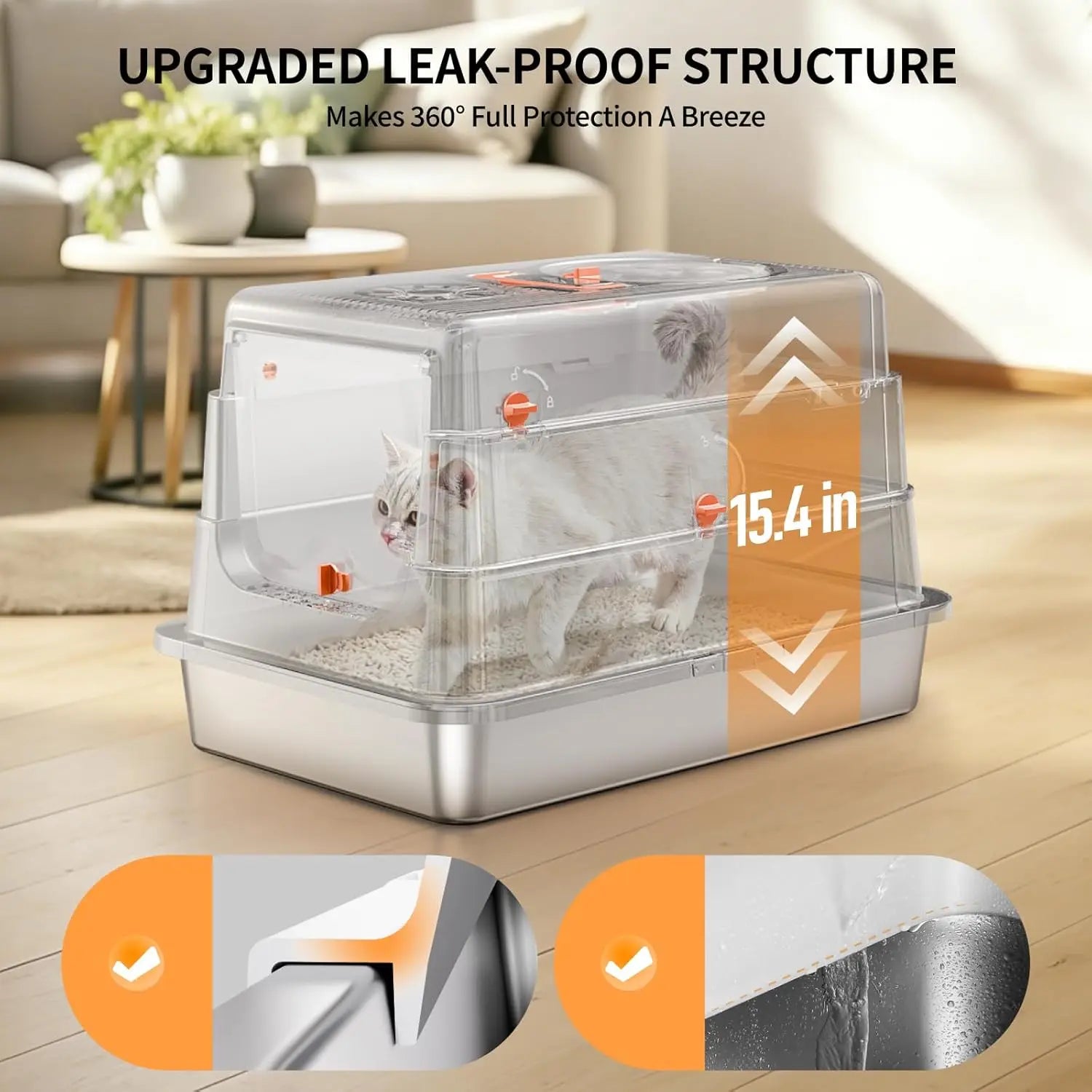 - Leak-proof, high sides—15.7 inches tall—to trap litter and urine and keep floors spotless during active or multi‑cat use.
