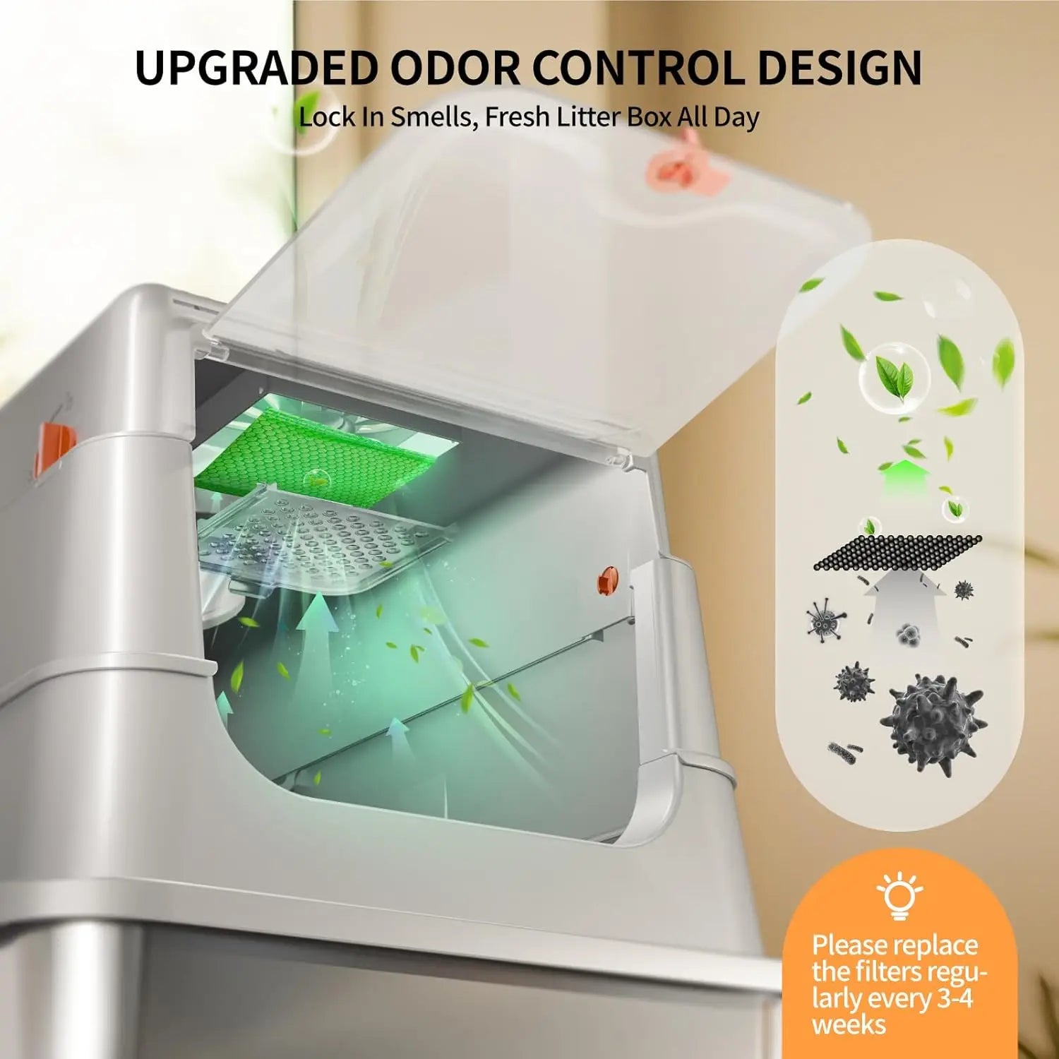 - Fully flip-top lid with a 4-layer detachable design for easy cleaning; switch between fully enclosed, semi-enclosed, or open mode to suit your cat.