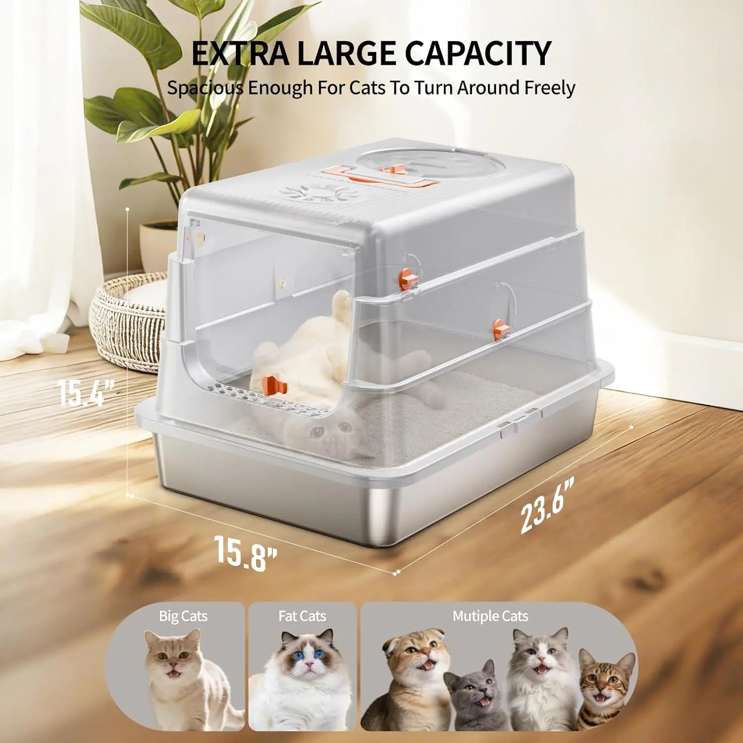 Upgrade your home with a cleaner, odor-controlled stainless steel cat litter box that supports cats of all sizes.