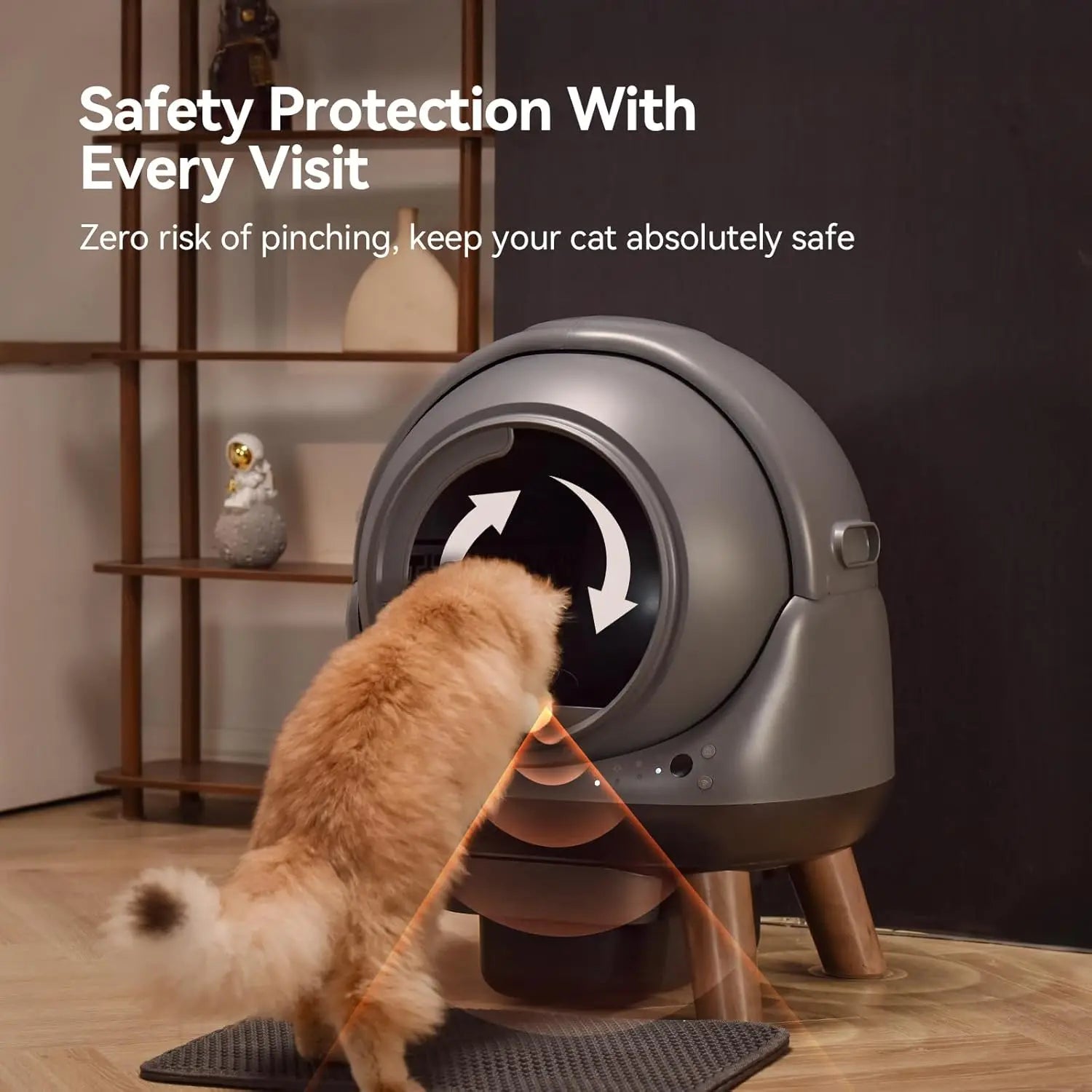 - Smart control and care: 2.4 GHz Wi‑Fi enables automatic or manual ('kitten mode') cleaning, app monitoring of your cat’s activity, and a fully sealed waste drawer plus a litter mat for odor control.